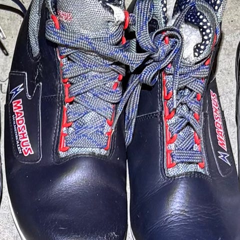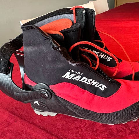 Madshus Nano JR kombisko i størrelse 41. Skoene er laget for juniorbruk og har en solid konstruksjon med borrelåsfeste og snøring for god tilpasning. NNN-bindinger. Meget gode sko og mye bruk igjen. En liten bit på ene skoen er knekt av, se bilde. Har aldr hatt noe å si ved bruk.