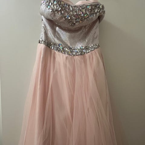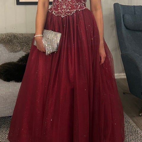 Veldig fin lilla ballkjole med fine paljetter og nydelige steiner i livet, kun brukt en gang. Glidelås og ekstra stramming i ryggen!