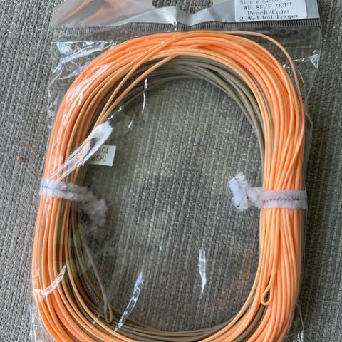 Maximumcatch Single Handed Spey Fly Line WF7 er den identiske kinakopien av Rio sin Single Handed spey line, en kopi som har høstet veldig mye skryt for å tilby samme egenskaper som originalen til en brøkdel av prisen. #7, 90 fot, 2 welded loops i fargen Peach/Camo.