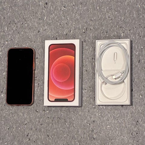 Selger en brukt iPhone 12 mini. Telefonen fungerer som den skal med 76% batterikapasitet. Litt knust i hjørnet på baksiden, men ellers hel