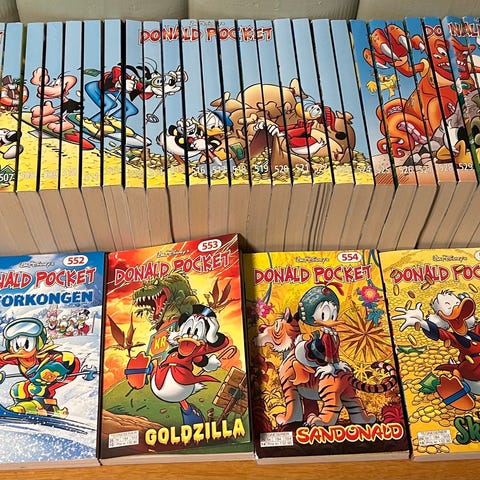 Selger en stor og sammenhengende samling Donald Pocket nr. 480 til og med 547 – totalt 67 bøker.