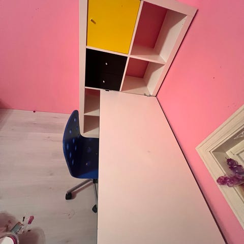 Skrivebord barn hvit med oppbevaring