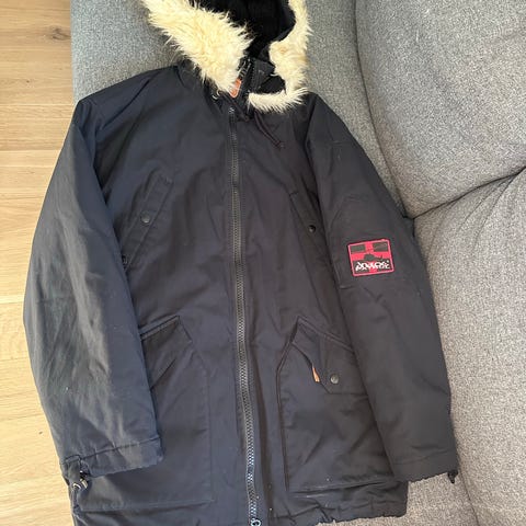 Jakke er i mosegrønn, ingen bruksmerker. Str L