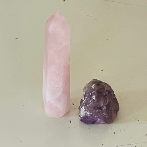 Mineraler: Kvarts med innslag av ametyst og sannsynlig limonitt
