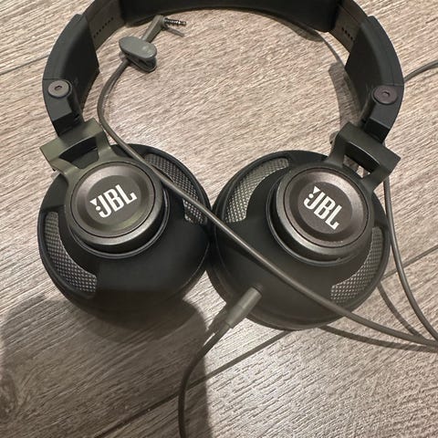 JBL hodetelefoner i lyseblå farge med kabeltilkobling. For barn.