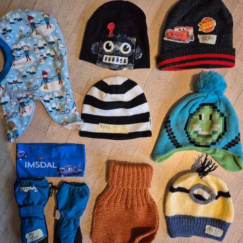 Cubus lue med SuperMario str 52/54 og H&M lue 6-10 år