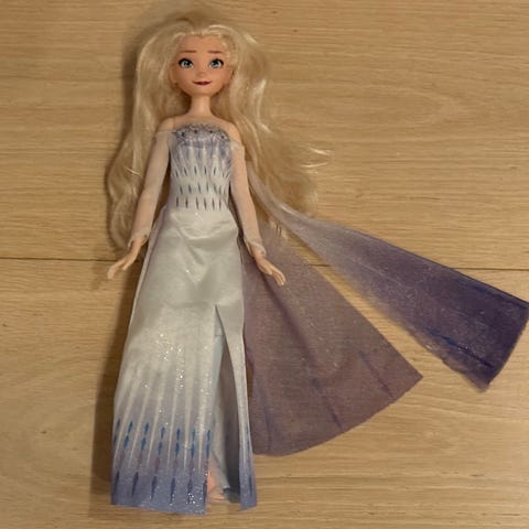 Barnet kan med denne dukken spille musikk fra Disney-filmen Frozen og også trykke på tastene på Elsa kjolen.