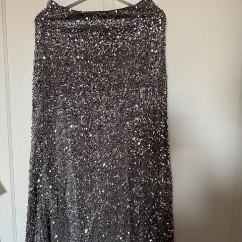 Bik Bok paljettkjørt i sølvfarge, størrelse M for kvinner. Laget av paljetter som gir et glitrende utseende.
