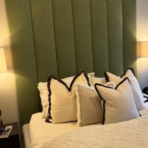 Beige Sengegavl fra Six Bond Street som passer til en 180cm bred dobbeltseng, og er 150cm høy. Den har stått i et gjesterom og er derfor meget pent brukt og selges grunnet flytting.