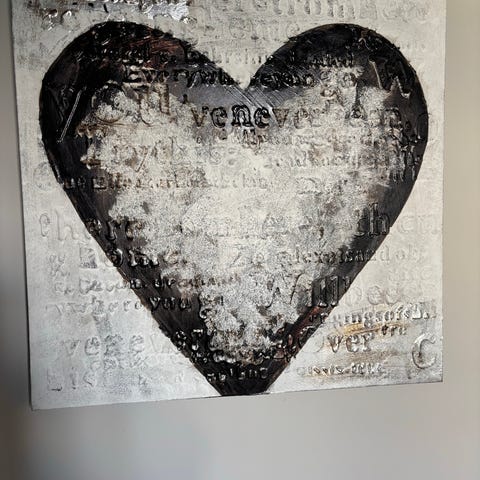 Veggbilde med abstrakt design i røde og beige toner. Bildet har et mønster med sirkler og linjer i hvitt over en bakgrunn med teksturerte firkanter og fargeoverganger.