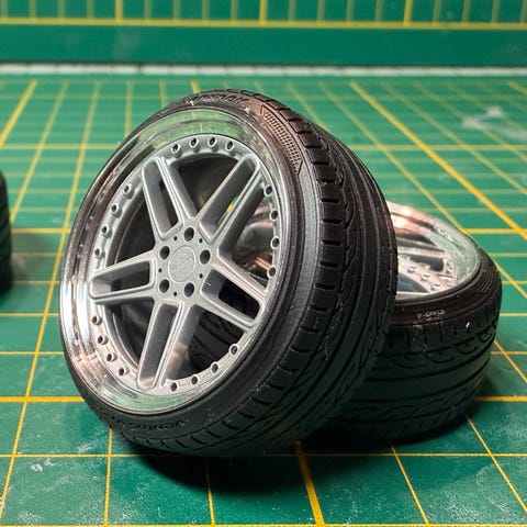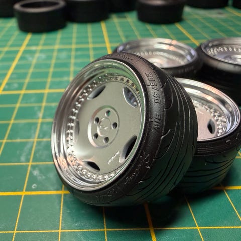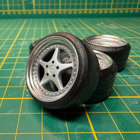 Ønsker du å se flere felger eller ombygde 1:18-modeller, kan du søke etter scaledworks på sosiale medier.