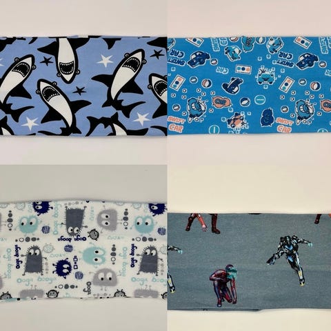 Helt nyte pannebånd sydd av meg, sølv merkene som er på er refleks og fåes i bil, dinosaur, enhjørning, koala, traktor, gravemaskin.