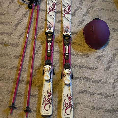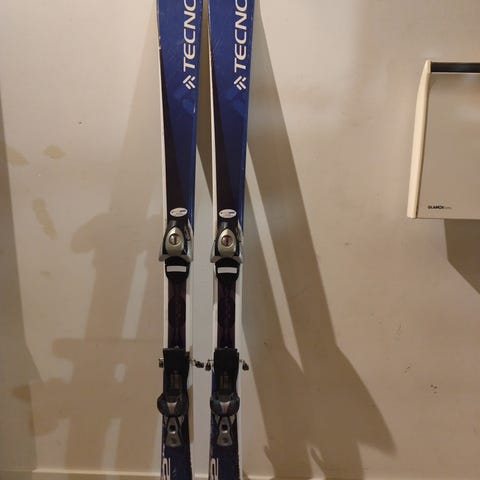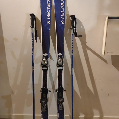 Tecnopro alpinski med en lengde på 120 i blå farge. Skiene er utstyrt med bindinger og kommer med matchende blå støvler i størrelse 235 ,- 275 mm