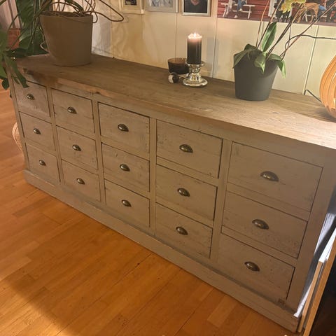 Baxter skjenk fra Home and Cottage selges. Må hentes på Jar. Står i første etasje med lett adkomst. Super til oppbevaring. Shabby chic stil.