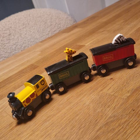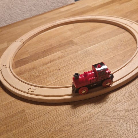 Pent brukte Brio-tunneler og skinner "fra naturen" selges til 70 kr samlet, eller 20 pr. stk.