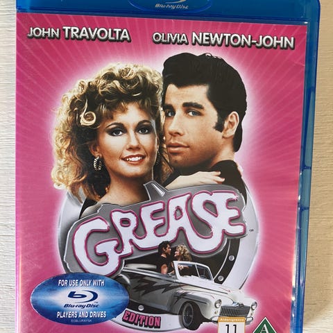 Blu-Ray-filmen Grease med John Travolta og Olivia Newton-John. Inneholder filmutgaven av Grease, en musikalfilm.