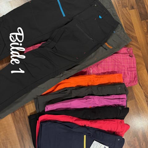 2 av buksene er så og si ubrukt (dei som er ubretta på bildet) ei skinny jeans og ei med sleng.