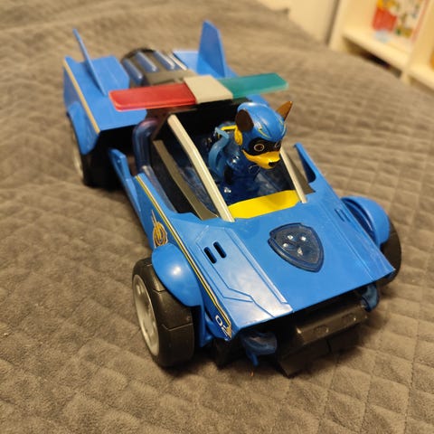 Chase, 2 x Zuma, Sky, Rubble, Marshall x 3 (1bil tom for batteri og en bil kan ikke lukkes sammen -se bilde), Rocky-mangler valp, pysjheltbil med Uggline og Gekko)