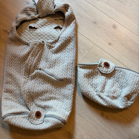Tilnærmet ubrukt vognpose for kjølige høst-/vår-/sommervær. Kan utvides med glidelås.