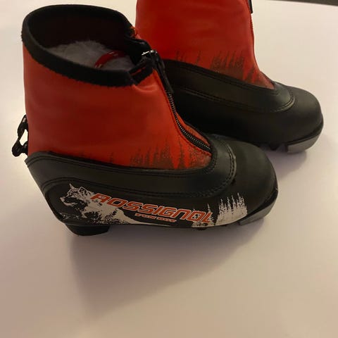 Selger barnesko i str 90 med str 28 sko. Har også et par lilla skistaver som følger med