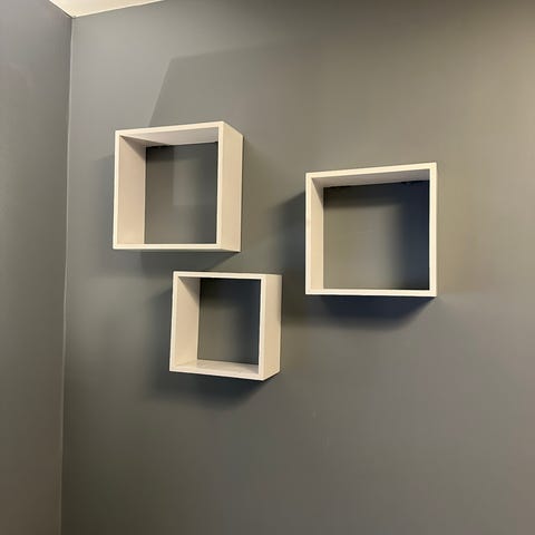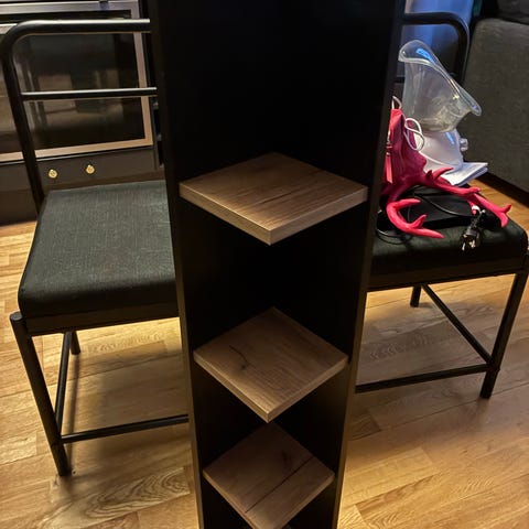 Selger tre små hyller fra Clas Ohlson. Kan stå på et bord eller i en større hylle. Eller kan også henges på vegg. Skruer følger ikke med og type må vurderes etter type vegg de skal henges opp på.