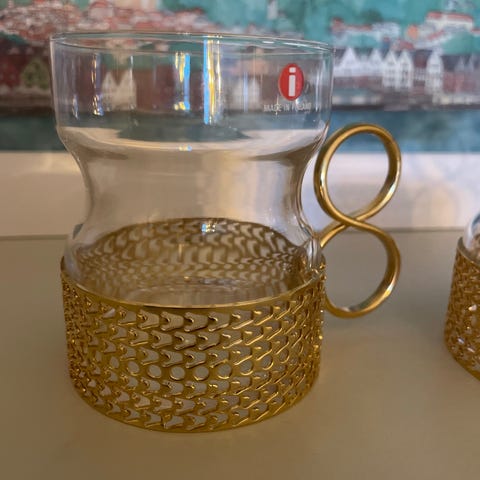 Japansk kaffekopp med fat i porselen med svart og gull dekor
