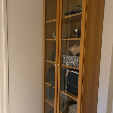 Praktisk og fint Billy skap med Oxberg glassdører, og fem hylleplater inni skapet. Det er i veldig god stand, med unntak av misfarging på sidene av skapet. Det har blitt noen lysere området der det har stått andre hyller inntil, se bilder. Selges derfor rimelig, også fordi den må hentes i 4. etg uten heis. Nypris er ca 2500 kr.