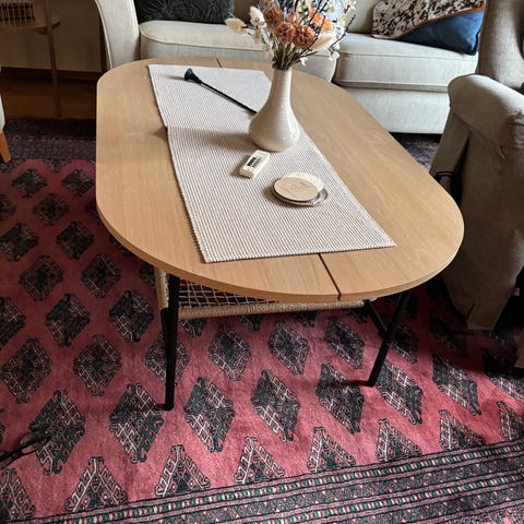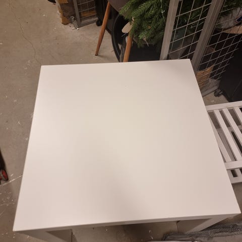Salongbord med "marmor" kontaktplast. Kan tas av, da er bordet grått.
