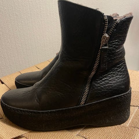 Bagatt sko størrelse 39. Laget i skinnmateriale.