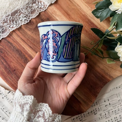 Søt og dekorativ vintage keramikkkanne med lokk og blått blomstermønster. Klassisk form som gjør den fin både til servering og som pynt alene. Fin f.eks. som en liten vase eller til olje? ☺️ Se bilder for mål.