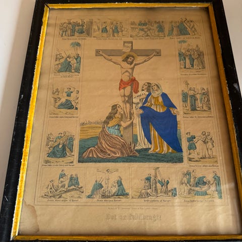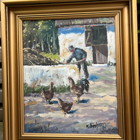 Kan ikke tyde signaturen ganske stort med ramme 60 x 120 cm ???selges kr 1500 kan sendes