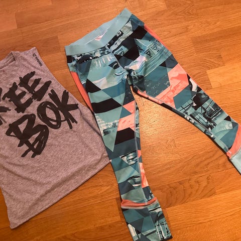 Pent brukt treningstøy fra Reebok selges. Settet består av: