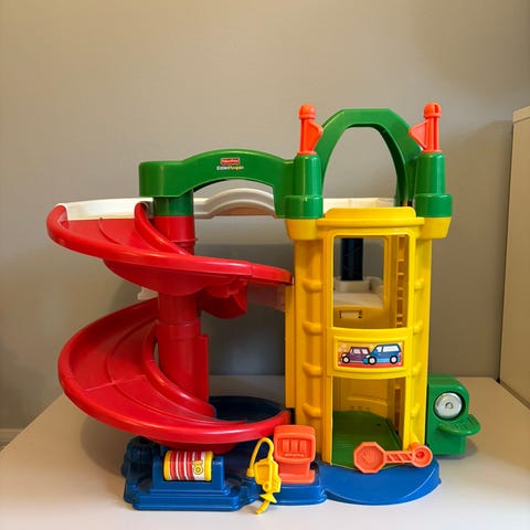 Pent brukt Fisherprice garasje/vaskehall med mange biler og figurer