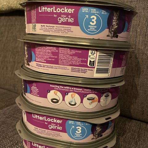 Pent og lite brukt litterlocker en kort periode da jeg har gått over til automatisk kattedo. To refillholdere (?)/kasetter + mange refillposer følger med. Vaskes såklart før salg 😊
