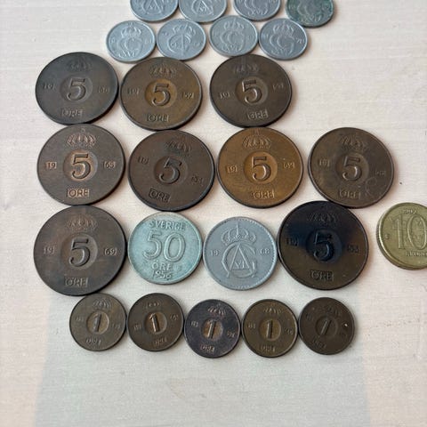 17 norske 25 øre mynter 1960-1973