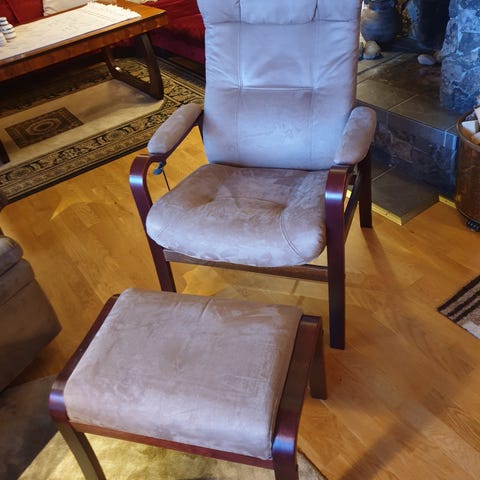 Stolen ble kjøpt våren 2025 - i hovedsak fordi jeg skulle ha en god og stødig lenestol å amme i. Jeg kan med hånda på hjertet si at dette er den beste lenestolen jeg både har satt meg ned i- og å sovet i 🩶 Den er stødig, myk og trekket er lunt og deilig! Vi hadde aldri kvittet oss med den hadde det ikke vært for plassmangelen vi nå står i.