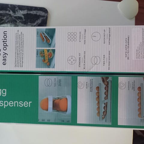 Praktisk eggholder med dispenserfunksjon for kjøleskap. Holder opptil 10 egg og gir enkel tilgang. eggene ruller frem automatisk.