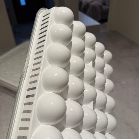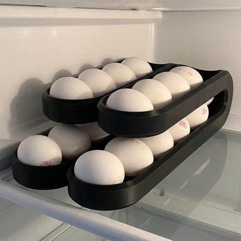 eggholder, eggdispenser, eggoppbevaring, kjøleskap, kjøkkenutstyr, eggbeholder, plassbesparende, 3D-print, praktisk kjøkken, oppbevaring