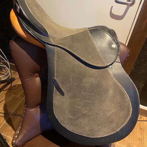 Stubben sprang sal. Dette er en sal som ligger utrolig fint på hesten og gir god kontakt og støtte til rytter. Den er brukt, så det finnes kosmetisk slitasje, men ingenting som påvirker funksjon eller bruk.