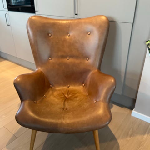 Rammen er laget av valnøtt og flettet lær. Alle møbler i porto-serien er håndlagde.