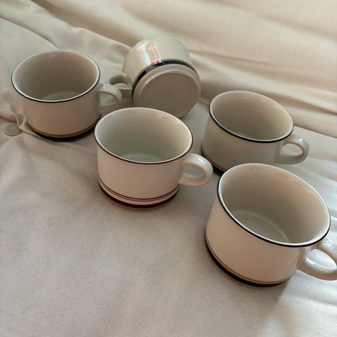Brukte kopper fra Shinzi Katoh - noen falmet i vask, en har mistet topp-skålen sin. Kan hentes på Ullerntoppen.