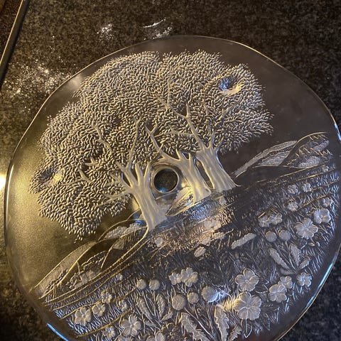 Fatet har bruksriper midt på, derav prisen, men sjenerer ikke i bruk. Kanskje du trenger et ekstra fat til konfirmasjon eller lignende.
