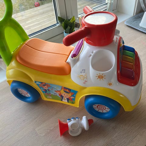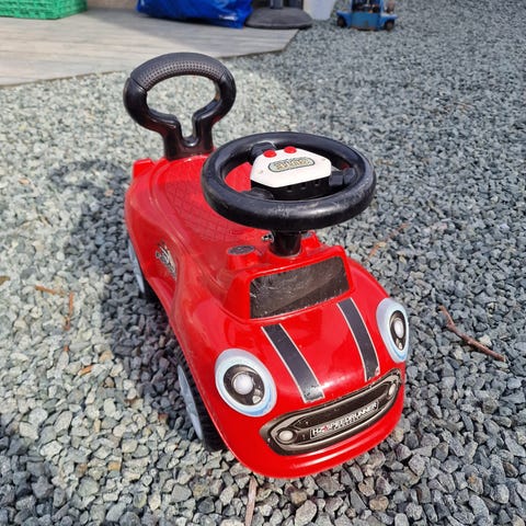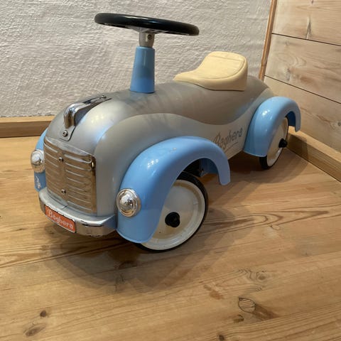 Gåbil fra Magni Toys. Rattet er litt vanskelig a snu når barnet sitter på bilen. Mulig dette kan utbedres.
