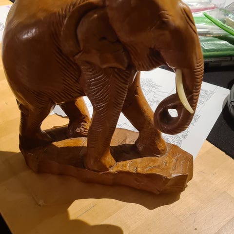 Den er ganske tung og stor . Mål kommer . Mangler desverre én støt tann