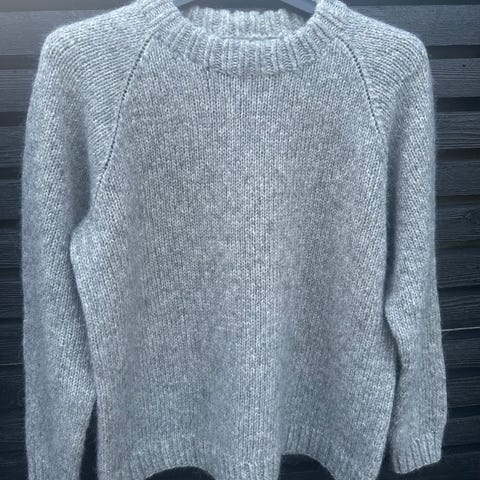 Genseren er pent brukt og har ingen skader eller rifter. Størrelse Large, men har krympet noe i vask og måler 68cm fra topp av krage.