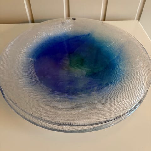 Selger 7 stk store serveringsfat i glass fra Hadeland Glassverk.