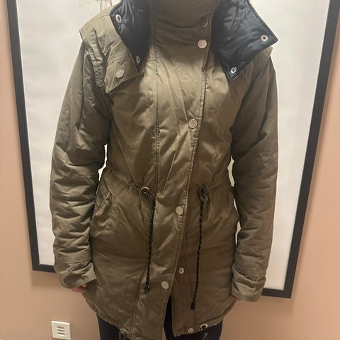 Kjempe kul og unik vinterjakke fra FWSS i str M, passer alt fra S - liten L. Hetten er har en svart pels av saueskinn, som også kan tas av. Pent brukt