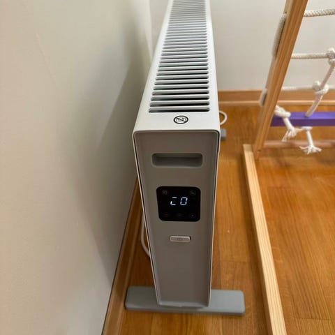 Kjøpt i november 2022. Fungerer som den skal. Noen bruksmerker, se eksempler i bildene. Passer fint til rom opp til 30 kvm. 1,5 meter lang ledning med støpsel. Bredde: 62 cm, dybde: 9,5 cm, høyde: 33,5 cm.