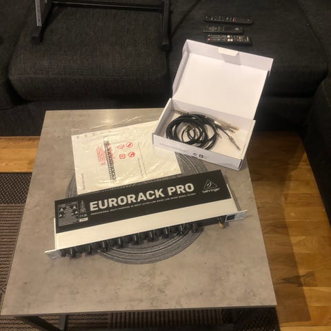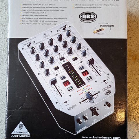 Behringer DDM4000 DJ mikser med flere kanaler, ulike innganger og utganger inkludert XLR, RCA og jack. Utstyrt med volum- og tonekontroller, equalizer, og diverse justeringsmuligheter for lydmiksing. Passer til bruk i DJ-oppsett og lydproduksjon. Kommer med flightcase