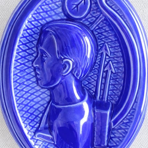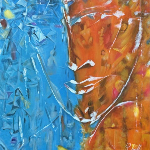Fargeradering/grafikk. Kjent norsk kunstner med karakteristisk stil. Sølvramme med glass